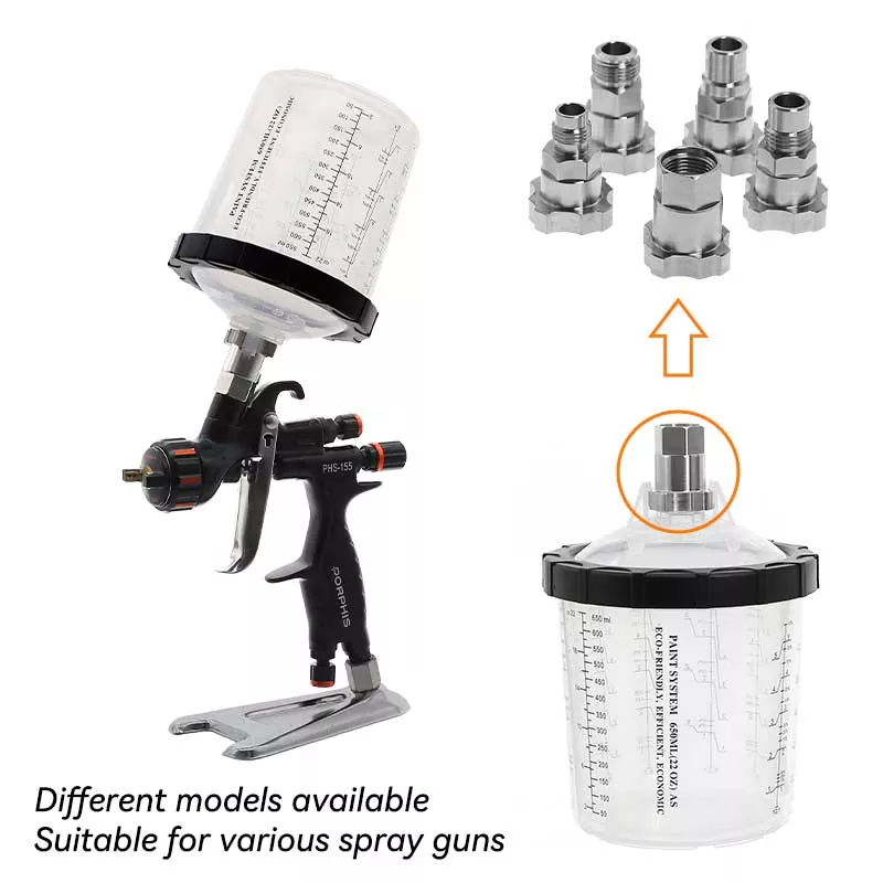 Produktu honek funtsean grabitate tradizionalaren elikadura kopa ordezkatzen du, pintura gehiago aurrezten ez ezik, pinturaren eraginkortasuna ere hobetzen duelako. Zehazki, margoak margotzen duenean, margoak erabat erabiltzen duenean, margoak erabat erabiltzen duen espiral automatikoaren diseinu dotorea; Bien bitartean, Quick Blocking Plus Liner ordezkatzeko diseinuak kopa garbitzea ekiditen du, margolanaren lana modu eraginkorrean eta behin eta berriz egin ahal izateko. Merkatuko spray pistola marka ia guztientzako egokitzaileak ditugu, spray pistola zaleen esperientziaren beharrak asetzeko. Egokitzailea altzairu herdoilgaitzez egina dago, korrosioarekiko erresistentea eta oso iraunkorra da. Estalduraren konbinazio estuak estalkiarekin konbinatzen du Kopako sistemak ez duela pintura pinturarik ihes egiten, eta erabili gabeko pinturaren epe luzeko biltegia onartzen du hondakinak ekiditeko.