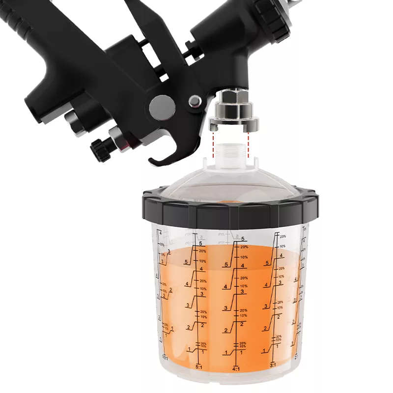 400ML Speedy Paint System 2.0 garatu berri den produktu patentatu bat da. Gida-hesiari esker, kopa pistolarekin konektatzeko denboraren % 50 baino gehiago aurrezten du, margolariaren arduragabekeriak eragindako pintura-ihesak saihestuz. Barneko kopak ordezkapen azkarra onartzen du, pintura soluzioarekin garbitzeko denbora eta kostua gehiago murrizten du. Zabaldutako tobera margoen banaketa uniformeagoa bermatzen du, pintura-hondakin txikia sortzen du barruko katiluan eta pinturaren erabilera nabarmen hobetzen du.