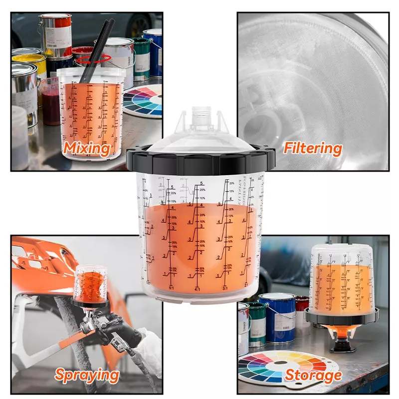 Pintura kopa botatzeko kopa sistemak unitate bakarrean nahastu, iragaztea, isurketa eta biltegiratze funtzioak uztartu ditu. Pre-pintura prestaketa errazten du, baina edalontziak eta paperezko onddoak nahasteko kostua aurrezten du, prestaketa denbora aurrezteko eta isurketa eraginkortasuna hobetzeko aukera ezin hobea bihurtuz.